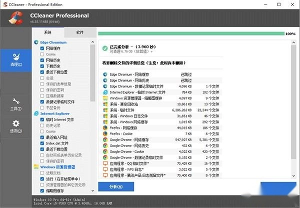 CCleaner 的健康检查功能能够对您的电脑进行分析,给出快速修复的建议,随后自动完成调整与更新操作,让电脑启动和运行起来更迅速、更安全。