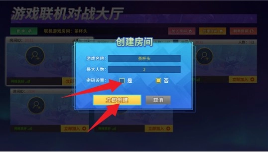 在房间设置界面,勾选密码设置选项,接着点击“立即创建”按钮,即可完成房间的生成。