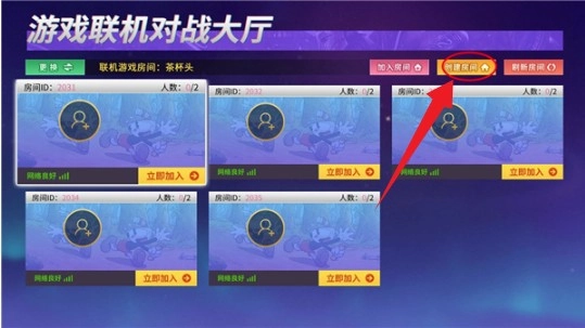 选定《茶杯头》后,找到 “创建房间” 按钮,点击它进入下一步设置。