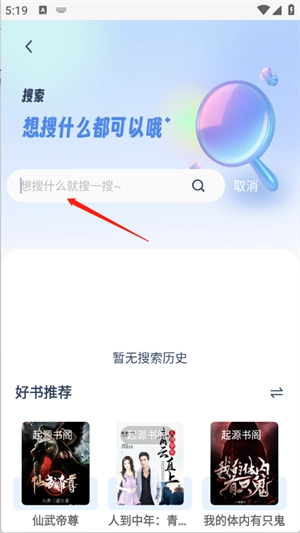 通过在顶部搜索框输入关键词,快速定位目标小说。