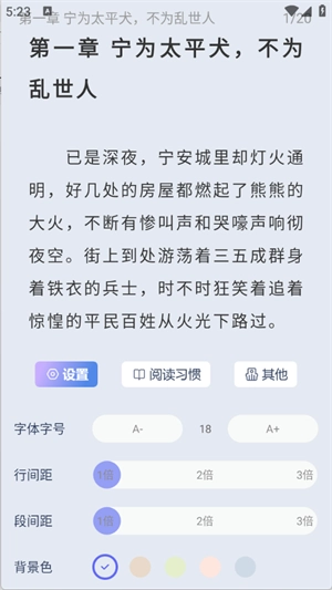 在阅读界面中点击屏幕中央,调出控制栏进行设置。