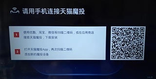 手机连接WiFi网络后,开启蓝牙功能,接着打开浏览器扫描电视屏幕上的二维码,即可使用天猫魔投或阿里TV助手。