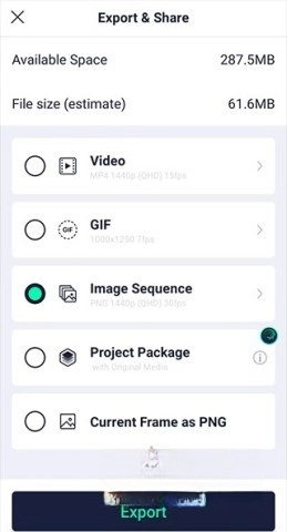 完成之后,你能够导出可供任何人用Alight Motion编辑的视频、GIF或者项目包,把你的创作分享给大家!