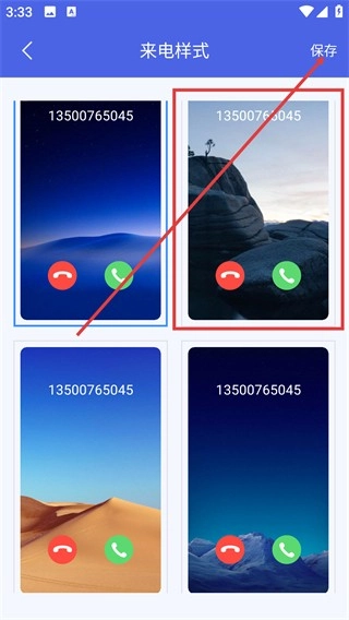 进入【来电样式】页面挑选心仪的样式后,点击右上角的【保存】按钮,就能启用该来电显示效果。