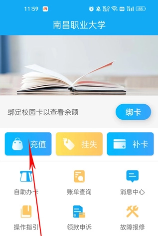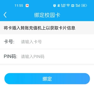 进入首页后,点击“绑卡”选项以绑定你的校园卡。