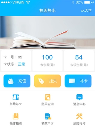 校园热水是一款校园服务类应用,学生在手机上安装后,可直接进行充卡、补卡或自助办卡操作。该应用具备挂失功能,学生卡丢失时能第一时间通过软件挂失,避免被盗用。另外,它还提供故障保修、意见反馈等服务,让学生使用起来更便捷。