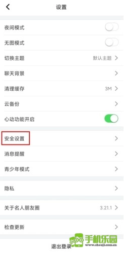 在设置页面中点击安全设置按钮;