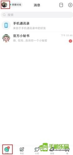 在消息页面中,一直点击左上角的头像按钮;