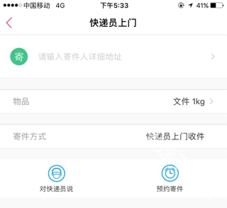 您可以点击输入寄件人的地址,此外还能预约寄件时间,并给快递员留下备注信息。