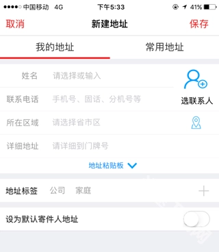 接下来在下面这个页面里,你可以填写寄件人的详细信息,像联系方式、具体地址这些,填好后点击右上角的保存按钮。这个地址保存好以后,下次寄件的时候就不用再重新输入了。