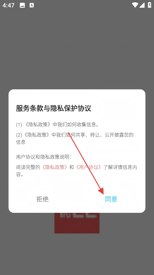 1、在服务条款与隐私保护协议弹窗中点击【同意】,进入精选首页。