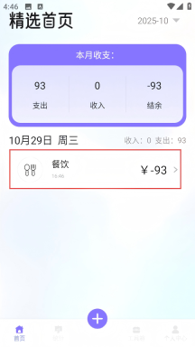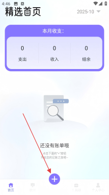 2、在精选首页点击下方“+”按钮,进入支出分类选择界面。