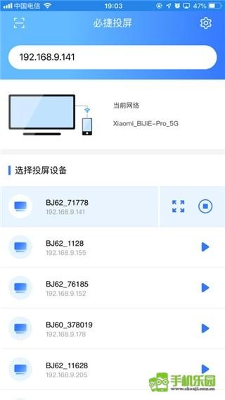 将安卓手机与必捷投屏接收端设备连接至同一局域网;