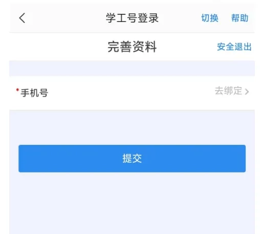 回到登录页面后,使用账号(学号)和密码登录,同时完成手机绑定操作。