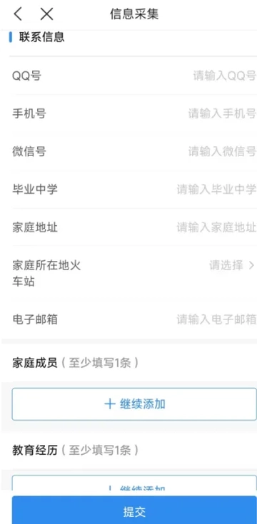 进入信息采集页面后,点击下方的编辑按钮进入信息填写界面,待所有信息维护完毕,点击页面下方的提交按钮完成提交操作即可。