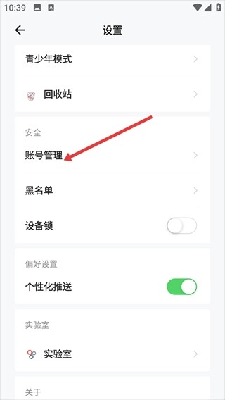 接下来找到【账号管理】选项,点击进入账号操作页面哦。
