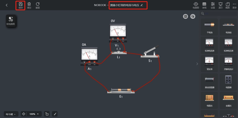 点击标题就能修改实验名称,把实验保存成对应的名字,点击“保存”按钮,就能把实验存到个人资源里面了。