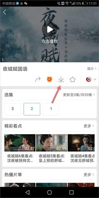 若播放的视频有缓存渠道,用户就能直接在播放界面内缓存该视频,比如观看电视剧时,可借助播放界面下方的按钮来完成视频缓存操作。