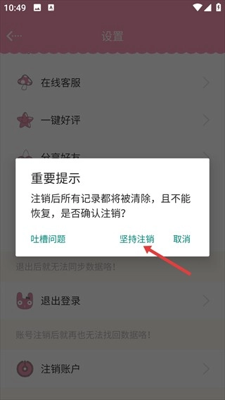 当弹出【重要提示】对话框时,点击【坚持注销】按钮即可完成该操作。