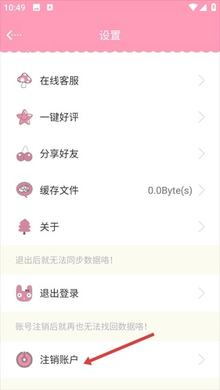 进入女生日历的【设置】页面,找到并点击【注销账户】选项。