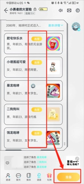 查看角色介绍,完成选角工作,尽可能代入角色,避免脱离剧情,点击“准备”按钮