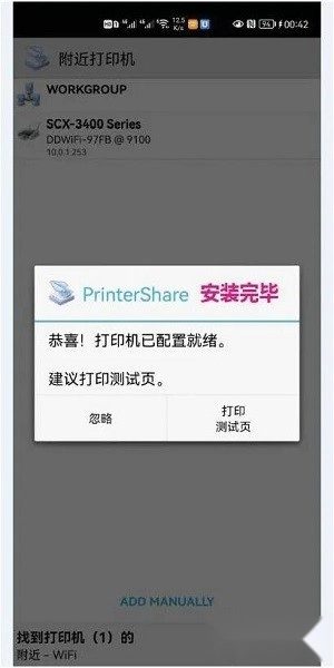 安装完成后,屏幕会显示“打印机已配置就绪”的提示,此时就能够开始打印操作了。