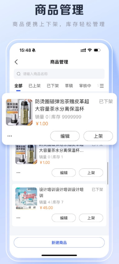商品管理:具备商品上架、下架、分类、标签管理以及价格调整等功能,可高效筛选商品,助力打造爆款。