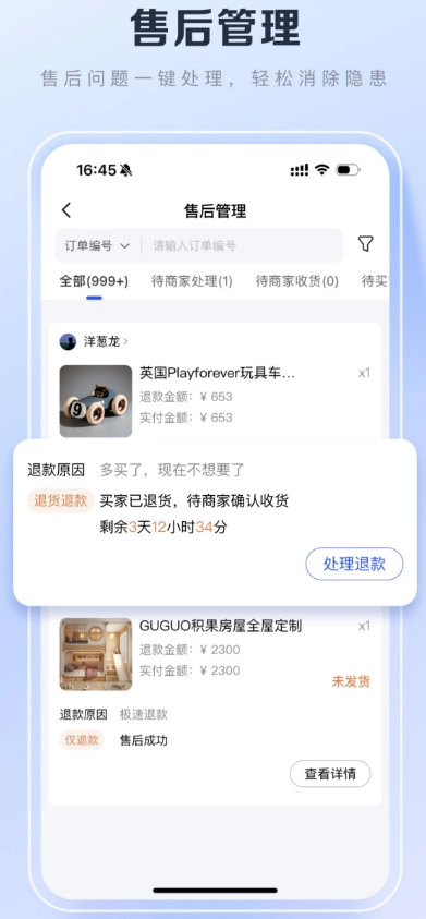 售后无忧:一键处理售后订单,简化流程,提高服务效率。