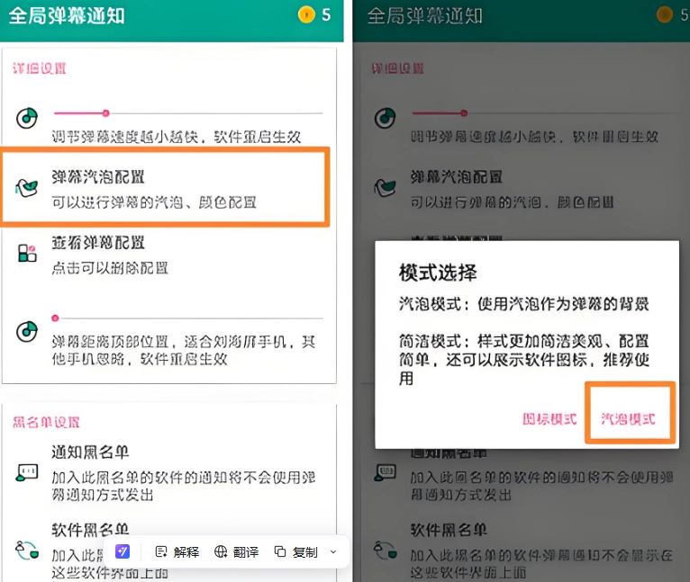 设置弹幕气泡
