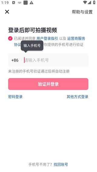打开应用后,首先需要完成账号注册流程。进入登录页面,输入手机号,随后点击“验证并登录”按钮即可完成操作。整个流程的设计十分人性化。