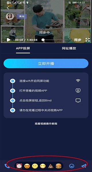 在同屏观看视频的界面中,点击“立即开播”按钮,接着在弹出的选项列表里挑选播放器(下面的操作演示以芒果TV为例)。