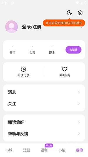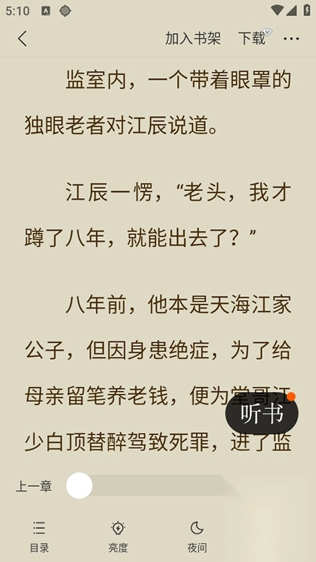 4、阅读过程中点击屏幕中央,能够进行日间/夜间模式的切换以及字体调整等操作。