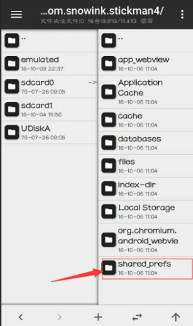 进入游戏安装包所在的目录,找到shared_prefs文件夹。