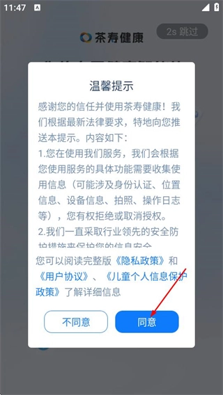 在使用协议与隐私政策弹窗里点击同意按钮,即可进入登录页面。