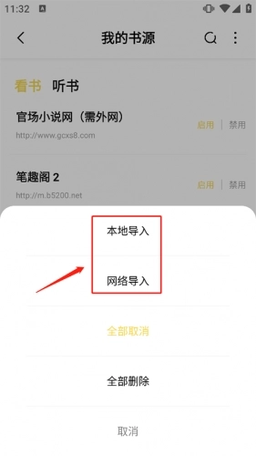 5、进入后启用你感兴趣的书源,或者点击右上角三点。