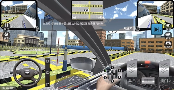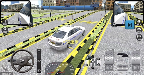 准确再现驾照考试的考场,包括倒车区、斜坡上的指定点、弯道行驶,每一个细节都到位。