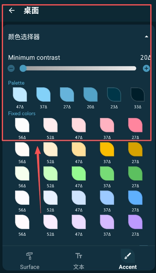 美化桌面可以从调整颜色入手,进入“界面与外观”设置后找到颜色选择器,既可以直接从预设的调色板里挑选颜色,像47A或者33A这类选项都能选用。
