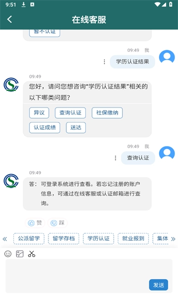 政务服务办理查询:留学存档可通过移动端办理,学历学位认证、就业报到、公派留学等事项的办事进度也能在移动端实时查询。