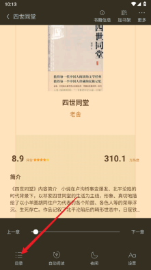 3、进入阅读界面后,轻点屏幕中间区域唤出菜单,接着点击“目录”选项。