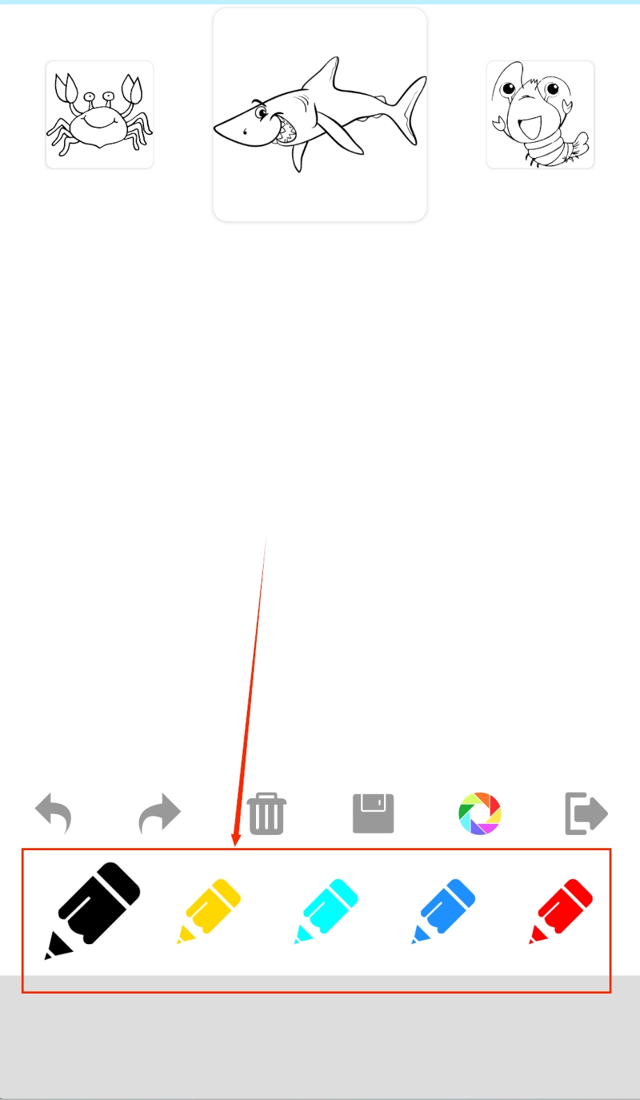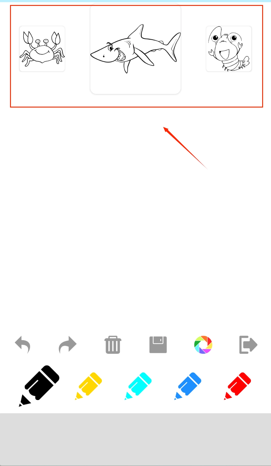在海洋动物图库中浏览海豚、鲸鱼等各类可爱海洋生物的模板,挑选出孩子最喜爱的图案,然后点击开始绘画。