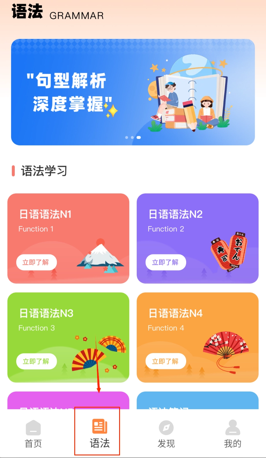 包含五十音图学习、真题训练、语法讲解等核心内容,帮助用户全面提升日语水平。其特色功能包括听力材料分类、发音纠正、学习进度跟踪等,让学习过程更加高效有趣。简洁的界面设计和科学的学习体系,适合从零基础到进阶的日语学习者使用。安装完成后,根据自身日语水平挑选合适的学习阶段,系统便会推荐对应的学习内容。可以在首页查看各类功能模块,熟悉软件的布局结构。