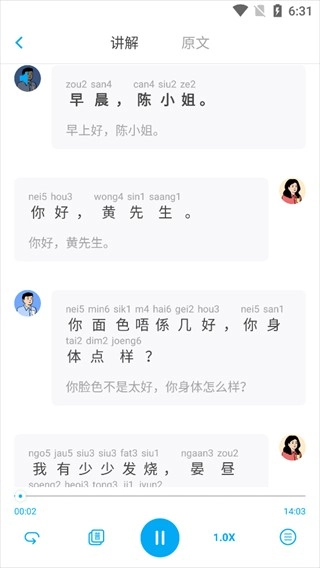 详尽的基础粤语发音:基础粤语拼音教学,19个声母,53个韵母和9个声调,详尽的发音技巧,还能跟读录音哦。