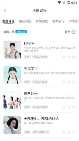 有趣的场景课程闯关:我们精心编排了旅游问路、逛街购物、广式美食等专题课程,还融入了经典港片古惑仔系列、警匪系列等内容,学习从词汇、句子再到对话,层层递进,闯关的形式让学习更具动力。