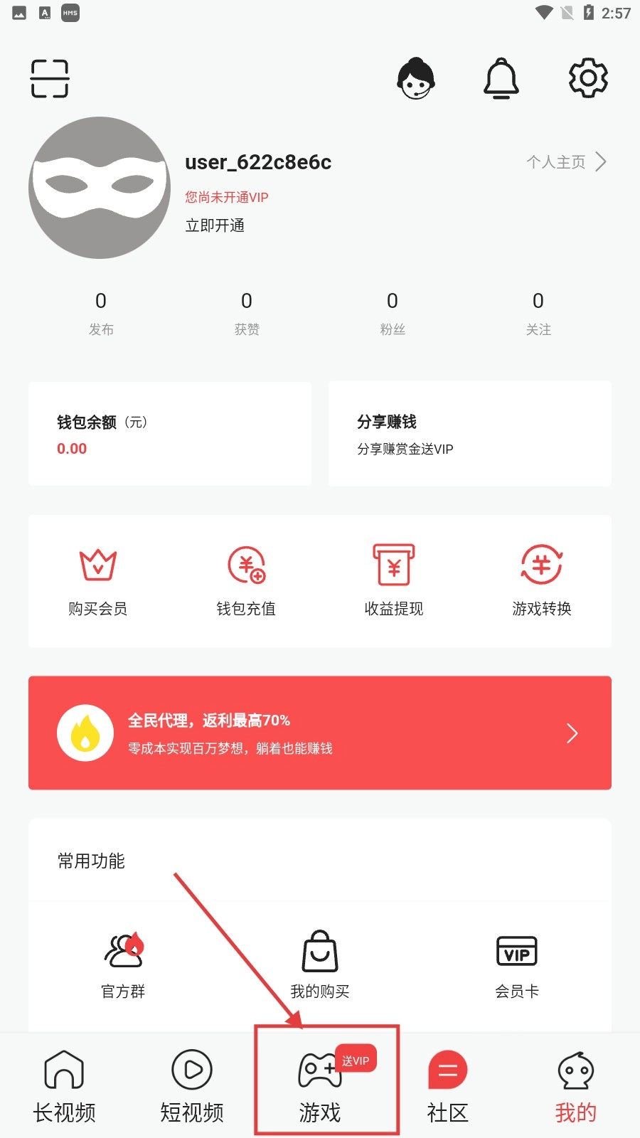 在【我的】页面中,点击底部的【游戏】选项,就能进入游戏板块,挑选自己想玩的游戏。
