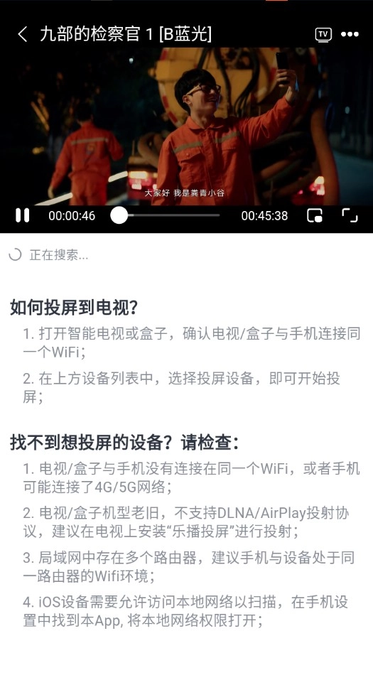 温馨提示:手机要与投屏设备处于相同网络下!