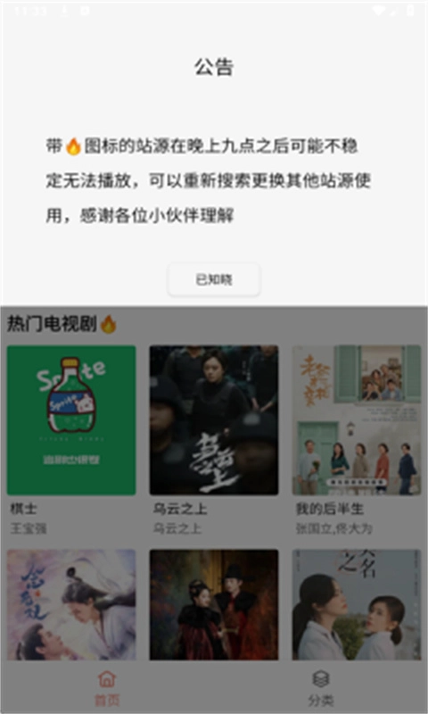 简洁界面:操作方便,支持关键词搜索以及电影、电视剧、综艺等分类筛选功能。