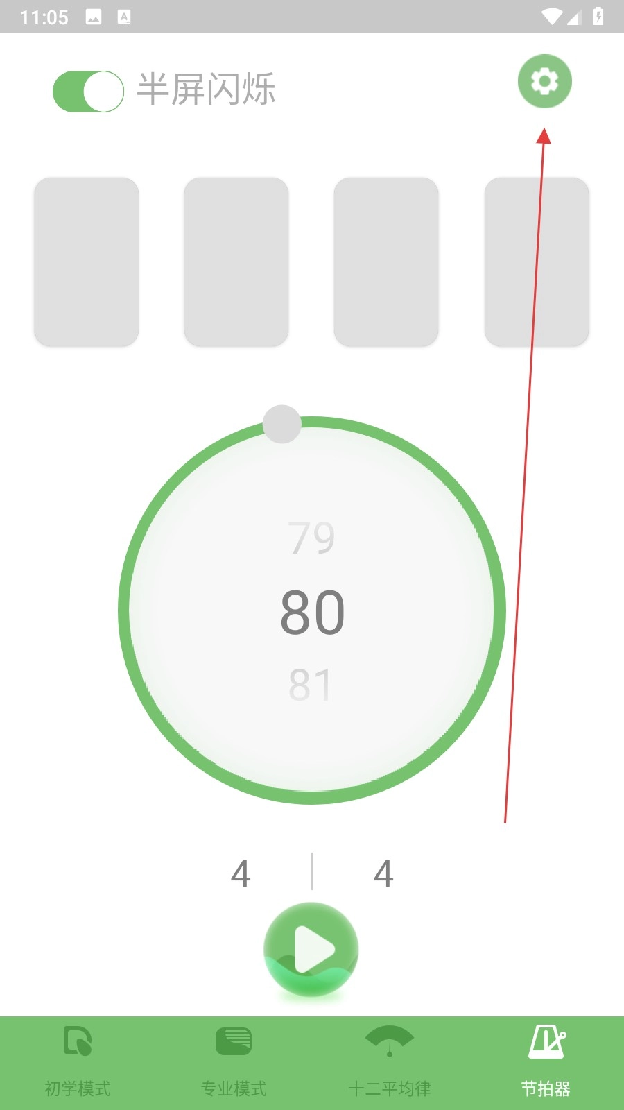 在节拍器界面,点击右上角的【设置】图标,即可进入设置页面。