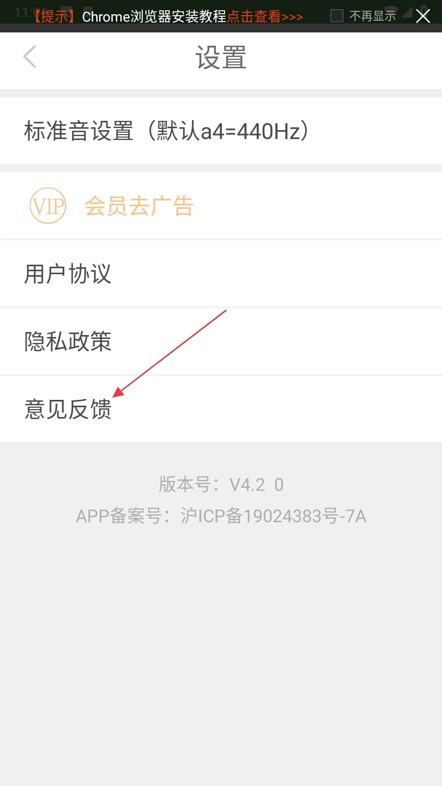 在设置页面中,点击【意见反馈】这一选项,即可进入意见反馈页面。