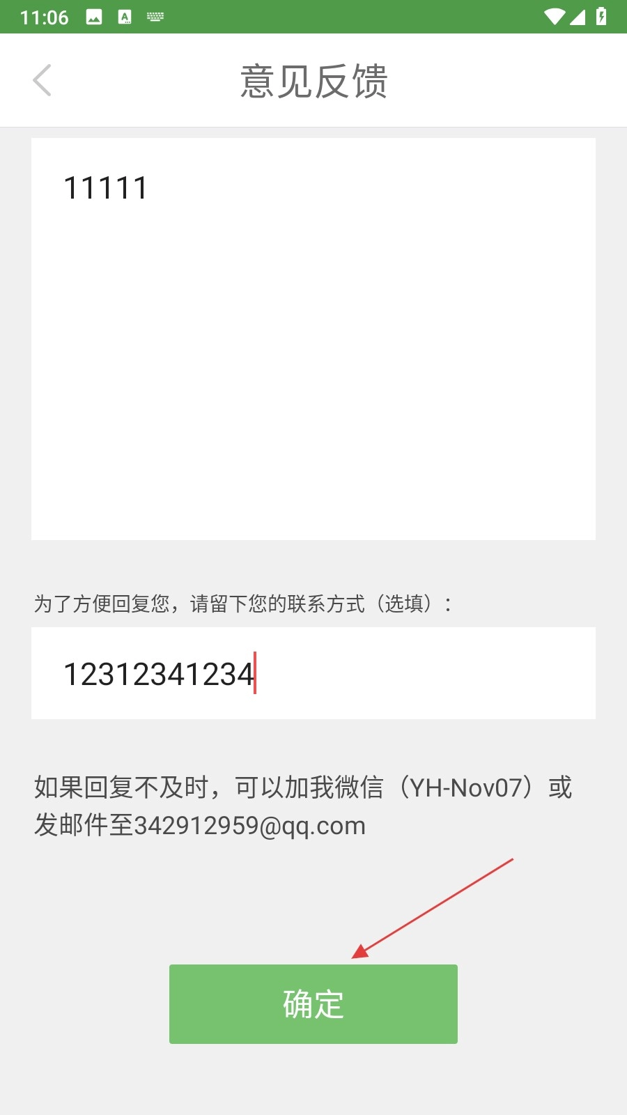 内容填写完成后,点击【确定】按钮,就能提交意见反馈。