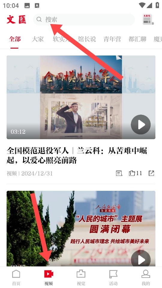 在视频页面,你可以点击查看新闻视频,也能搜索自己感兴趣的视频。